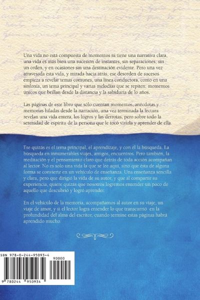 Las páginas de este libro que sólo cuentan momentos, anécdotas y memorias hiladas desde la narración, una vez terminada la lectura revelan una vida entera, los logros y las derrotas, pero sobre todo la serenidad de espíritu de la persona que le tocó vivirla y aprender de ella.