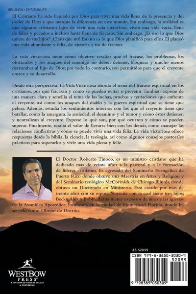El Cristiano ha sido llamado por Dios para vivir una vida llena de la presencia y del poder de Dios y que marque la diferencia en este mundo. Sin embargo, la realidad es que algunos cristianos lejos de vivir una vida victoriosa, viven una vida vacía, llena de fallas y pecados e incluso hasta llena de fracasos. Sin embargo, ¿Es eso lo que Dios quiere de sus hijos? ¡Claro que no! Eso no es lo que Dios planificó para ellos. El planeó una vida abundante y feliz, de victoria y no de fracaso. La vida victoriosa tiene como objetivo resaltar que el fracaso, los problemas, los obstáculos y los ataques del enemigo no deben detener, bloquear y mucho menos derrumbar al hijo de Dios; por todo lo contrario, son permitidos para que el creyente crezca y se desarrolle. Desde esta perspectiva, La Vida Victoriosa aborda el tema del fracaso espiritual en los cristianos, por qué fracasan y cómo se pueden evitar o prevenir. También expone de una manera clara y sencilla el tema de las luchas, pruebas y tentaciones que enfrenta el creyente, así como los ataques del diablo y la guerra espiritual que se tiene que pelear. Además, estudia los sentimientos internos con los que el creyente tiene que batallar, como la amargura, la ansiedad, el desánimo y el temor y cómo éstos detienen y neutralizan al creyente. Expone lo qué son, por qué ocurren y cómo se pueden superar. Finalmente, resalta el valor de llevarse bien con los demás, como manejar las relaciones conflictivas y cómo se puede vivir una vida feliz. La vida victoriosa ofrece respuestas desde la biblia, la ciencia, la teología, así como algunos consejos pastorales prácticos para superarlos y vivir una vida plena y feliz.