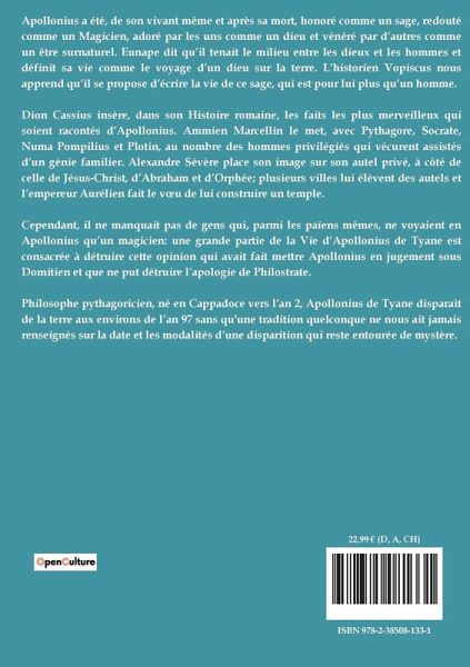 Apollonius a été, de son vivant même et après sa mort, honoré comme un sage, redouté comme un Magicien, adoré par les uns comme un dieu et vénéré par d¿autres comme un être surnaturel. Eunape dit qüil tenait le milieu entre les dieux et les hommes et définit sa vie comme le voyage d¿un dieu sur la terre. L¿historien Vopiscus nous apprend qüil se propose d¿écrire la vie de ce sage, qui est pour lui plus qüun homme. Dion Cassius insère, dans son Histoire romaine, les faits les plus merveilleux qui soient racontés d¿Apollonius. Ammien Marcellin le met, avec Pythagore, Socrate, Numa Pompilius et Plotin, au nombre des hommes privilégiés qui vécurent assistés d¿un génie familier. Alexandre Sévère place son image sur son autel privé, à côté de celle de Jésus-Christ, d¿Abraham et d¿Orphée; plusieurs villes lui élèvent des autels et l¿empereur Aurélien fait le v¿u de lui construire un temple. Cependant, il ne manquait pas de gens qui, parmi les païens mêmes, ne voyaient en Apollonius qüun magicien: une grande partie de la Vie d¿Apollonius de Tyane est consacrée à détruire cette opinion qui avait fait mettre Apollonius en jugement sous Domitien et que ne put détruire l¿apologie de Philostrate. Philosophe pythagoricien, né en Cappadoce vers l¿an 2, Apollonius de Tyane disparaît de la terre aux environs de l¿an 97 sans qu'une tradition quelconque ne nous ait jamais renseignés sur la date et les modalités d¿une disparition qui reste entourée de mystère.