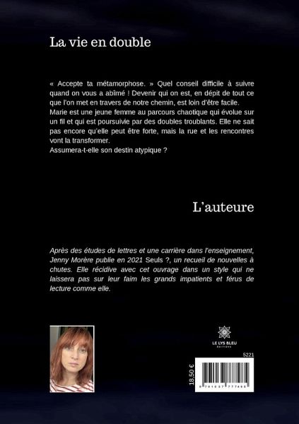 « Accepte ta métamorphose. » Quel conseil difficile à suivre quand on vous a abîmé ! Devenir qui on est, en dépit de tout ce que l¿on met en travers de notre chemin, est loin d¿être facile. Marie est une jeune femme au parcours chaotique qui évolue sur un fil et qui est poursuivie par des doubles troublants. Elle ne sait pas encore qüelle peut être forte, mais la rue et les rencontres vont la transformer. Assumera-t-elle son destin atypique ?