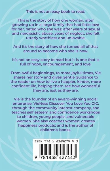 La Vie Est Belle is not an easy book to read. It is the story of how one woman, after growing up in a large family that had little love for her, hated who she was; after years of sexual and narcissistic abuse, years of neglect, she felt utterly worthless and unlovable. And it's the story of how she turned all of that around to become who she is now. It's not an easy story to read but it is one that is full of hope, encouragement, and love. From awful beginnings, to more joyful times, Vie shares her story and gives gentle guidance to the reader on how to live a happier, kinder, more confident life, helping them see how wonderful they are, just as they are. Vie Portland is the founder of an award-winning social enterprise, VieNess Discover You Love You CIC. Through the community interest company, she teaches self esteem and confidence workshops to children, young people, and vulnerable women. She also coaches women, creates happiness products, and is the author of children's books.