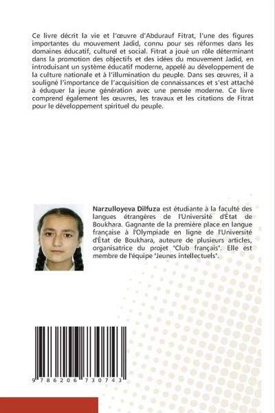 Ce livre décrit la vie et l'oeuvre d'Abdurauf Fitrat, l'une des figures importantes du mouvement Jadid, connu pour ses réformes dans les domaines éducatif, culturel et social. Fitrat a joué un rôle déterminant dans la promotion des objectifs et des idées du mouvement Jadid, en introduisant un système éducatif moderne, appelé au développement de la culture nationale et à l'illumination du peuple. Dans ses oeuvres, il a souligné l'importance de l'acquisition de connaissances et s'est attaché à éduquer la jeune génération avec une pensée moderne. Ce livre comprend également les oeuvres, les travaux et les citations de Fitrat pour le développement spirituel du peuple.