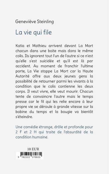 Katia et Mathieu arrivent devant La Mort chacun dans une boite mais dans le même colis. Ils ignorent tout l'un de l'autre si ce n'est qu'elle s'est suicidée et qu'il est là par accident. Au moment de franchir l'ultime porte, La Vie stoppe La Mort car la Haute Autorité offre aux deux jeunes gens la possibilité de retourner parmi les vivants à la condition que le colis contienne les deux corps. Il veut vivre, elle veut mourir. Chacun tente de convaincre l'autre mais le temps presse car le fil qui les relie encore à leur propre vie se déroule à grande vitesse sur la bobine du temps et la bougie va bientôt s'éteindre.Une comédie étrange, drôle et profonde pour 2 F et 2 H qui traite de l'absurdité de la condition humaine.