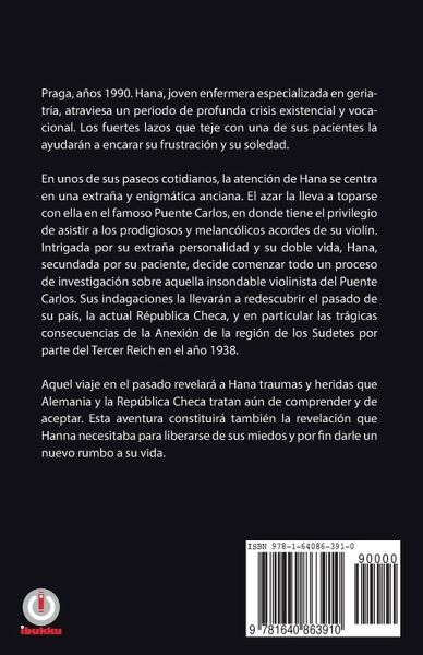 Praga, años 1990. Hana, joven enfermera especializada en geriatría, atraviesa un periodo de profunda crisis existencial y vocacional. Los fuertes lazos que teje con una de sus pacientes la ayudarán a encarar su frustración y su soledad. En unos de sus paseos cotidianos, la atención de Hana se centra en una extraña y enigmática anciana. El azar la lleva a toparse con ella en el famoso Puente Carlos, en donde tiene el privilegio de asistir a los prodigiosos y melancólicos acordes de su violín. Intrigada por su extraña personalidad y su doble vida, Hana, secundada por su paciente, decide comenzar todo un proceso de investigación sobre aquella insondable violinista del Puente Carlos. Sus indagaciones la llevarán a redescubrir el pasado de su país, la actual Républica Checa, y en particular las trágicas consecuencias de la Anexión de la región de los Sudetes por parte del Tercer Reich en el año 1938. Aquel viaje en el pasado revelará a Hana traumas y heridas que Alemania y la República Checa tratan aún de comprender y de aceptar. Esta aventura constituirá también la revelación que Hanna necesitaba para liberarse de sus miedos y por fin darle un nuevo rumbo a su vida.