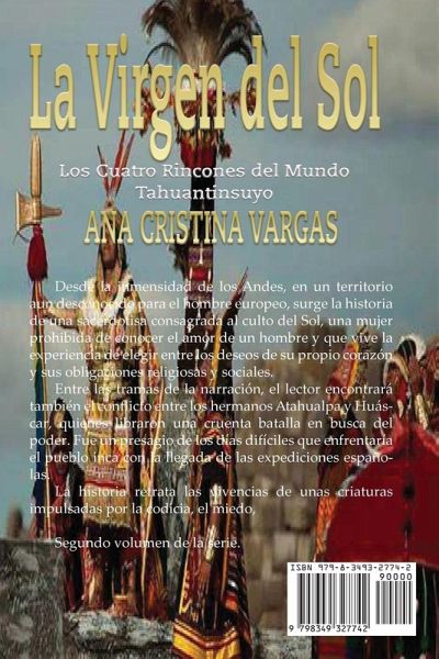 Desde la inmensidad de los Andes, en un territorio aun desconocido para el hombre europeo, surge la historia de una sacerdotisa consagrada al culto del Sol, una mujer prohibida de conocer el amor de un hombre y que vive la experiencia de elegir entre los deseos de su propio corazón y sus obligaciones religiosas y sociales. Entre las tramas de la narración, el lector encontrará también el conflicto entre los hermanos Atahualpa y Huáscar, quienes libraron una cruenta batalla en busca del poder. Fue un presagio de los días difíciles que enfrentaría el pueblo inca con la llegada de las expediciones españolas. La historia retrata las vivencias de unas criaturas impulsadas por la codicia, el miedo, la religiosidad, el deber y el amor, en una vida ambientada en los últimos días del magnífico imperio de Lops Cuatro Rincones del Mundo. Segundo volumen de la serie.