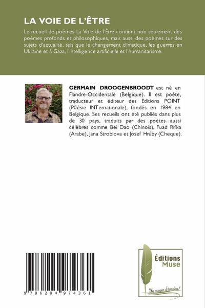 Le recueil de poèmes La Voie de l'Être contient non seulement des poèmes profonds et philosophiques, mais aussi des poèmes sur des sujets d'actualité, tels que le changement climatique, les guerres en Ukraine et à Gaza, l'intelligence artificielle et l'humanitarisme.