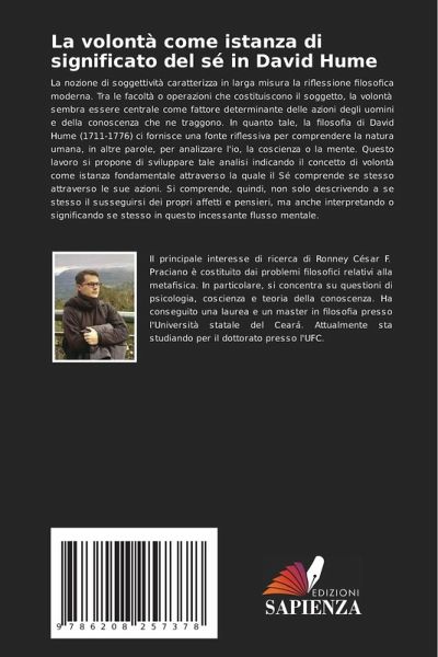 La nozione di soggettività caratterizza in larga misura la riflessione filosofica moderna. Tra le facoltà o operazioni che costituiscono il soggetto, la volontà sembra essere centrale come fattore determinante delle azioni degli uomini e della conoscenza che ne traggono. In quanto tale, la filosofia di David Hume (1711-1776) ci fornisce una fonte riflessiva per comprendere la natura umana, in altre parole, per analizzare l'io, la coscienza o la mente. Questo lavoro si propone di sviluppare tale analisi indicando il concetto di volontà come istanza fondamentale attraverso la quale il Sé comprende se stesso attraverso le sue azioni. Si comprende, quindi, non solo descrivendo a se stesso il susseguirsi dei propri affetti e pensieri, ma anche interpretando o significando se stesso in questo incessante flusso mentale.