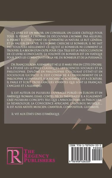 Ce livre est un miroir, un conseiller, un guide critique pour tous. Il permet à l'homme de découvrir l'homme. Par ailleurs, il permet à l'être vivant de connaître la nature, le but général et la valeur de la vie. Si l'homme cherche le bonheur, il ne sait pas toujours réellement ce qu'est le bonheur ni comment le trouver. Il a besoin d'un outil pour cela. Telle est la préoccupation de ce livre iconoclaste. La volonté de bonheur est un viatique pour tous les combattants de la vie, du bonheur et de la puissance.