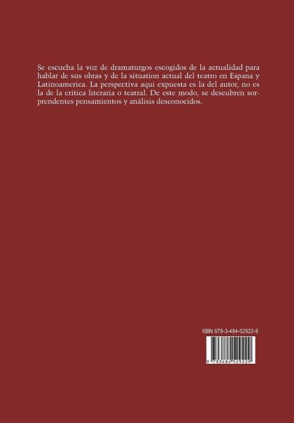 Selected present-day dramatists from Spain and Latin-America speak about their theatre and its present situation. The perspective is that of the authors, not of literary or drama critics. The result is a series of surprising thoughts and analyses which do not feature in the usual specialist discussions.
