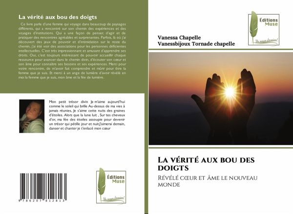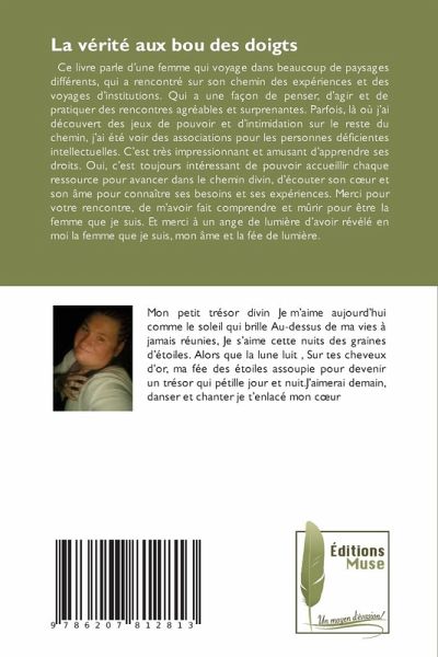 Ce livre parle d'une femme qui voyage dans beaucoup de paysages différents, qui a rencontré sur son chemin des expériences et des voyages d'institutions. Qui a une façon de penser, d'agir et de pratiquer des rencontres agréables et surprenantes. Parfois, là où j'ai découvert des jeux de pouvoir et d'intimidation sur le reste du chemin, j'ai été voir des associations pour les personnes déficientes intellectuelles. C'est très impressionnant et amusant d'apprendre ses droits. Oui, c'est toujours intéressant de pouvoir accueillir chaque ressource pour avancer dans le chemin divin, d'écouter son coeur et son âme pour connaître ses besoins et ses expériences. Merci pour votre rencontre, de m'avoir fait comprendre et mûrir pour être la femme que je suis. Et merci à un ange de lumière d'avoir révélé en moi la femme que je suis, mon âme et la fée de lumière.
