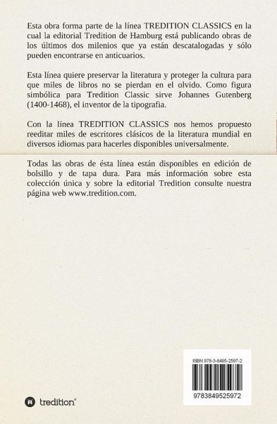 Esta obra forma parte de la línea TREDITION CLASSICS en la cual la editorial tredition de Hamburgo está publicando obras de los últimos dos milenios que ya están descatalogadas y sólo pueden encontrarse en anticuarios. Esta línea quiere preservar la literatura y proteger la cultura para que miles de libros no se pierdan en el olvido. Con la línea TREDITION CLASSICS nos hemos propuesto reeditar miles de escritores clásicos de la literatura mundial en diversos idiomas para hacerles disponibles universalmente.