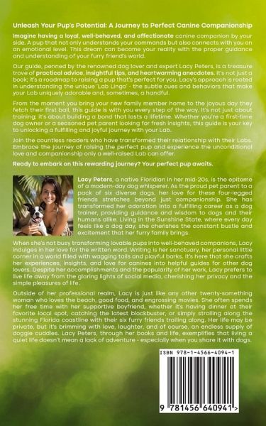 Unleash Your Pup's Potential: A Journey to Perfect Canine Companionship Imagine having a loyal, well-behaved, and affectionate canine companion by your side. A pup that not only understands your commands but also connects with you on an emotional level. This dream can become your reality with the proper guidance and understanding of your furry friend's world. Our guide, penned by the renowned dog lover and expert Lacy Peters, is a treasure trove of practical advice, insightful tips, and heartwarming anecdotes. It's not just a book; it's a roadmap to raising a pup that's perfect for you. Lacy's approach is rooted in understanding the unique 'Lab Lingo' - the subtle cues and behaviors that make your Lab uniquely adorable and, sometimes, a handful. From the moment you bring your new family member home to the joyous day they fetch their first ball, this guide is with you every step of the way. It's not just about training; it's about building a bond that lasts a lifetime. Whether you're a first-time dog owner or a seasoned pet parent looking for fresh insights, this guide is your key to unlocking a fulfilling and joyful journey with your Lab. Join the countless readers who have transformed their relationship with their Labs. Embrace the journey of raising the perfect pup and experience the unconditional love and companionship only a well-raised Lab can offer. Ready to embark on this rewarding journey? Your perfect pup awaits.