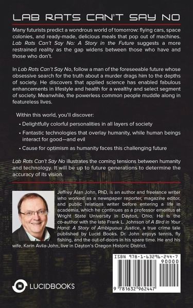 Many futurists predict a wondrous world of tomorrow: flying cars, space colonies, and ready-made, delicious meals that pop out of machines. Lab Rats Can’t Say No: A Story in the Future suggests a more restrained reality as the gap widens between those who have and those who don’t. In Lab Rats Can’t Say No, follow a man of the foreseeable future whose obsessive search for the truth about a murder drags him to the depths of society. He discovers that applied science has enabled fabulous enhancements in lifestyle and health for a wealthy and select segment of society. Meanwhile, the powerless common people muddle along in featureless lives. Within this world, you’ll discover: Delightfully colorful personalities in all layers of society Fantastic technologies that overlay humanity, while human beings interact for good—and evil Cause for optimism as humanity faces this challenging future Lab Rats Can’t Say No illustrates the coming tensions between humanity and technology. It will be up to future generations to determine the accuracy of its vision.