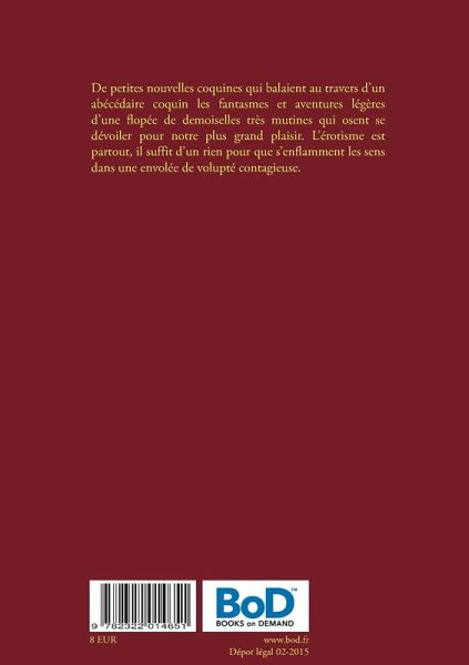De petites nouvelles coquines qui balaient au travers d'un abécédaire coquin les fantasmes et aventures légères d'une flopée de demoiselles très mutines qui osent se dévoiler pour notre plus grand plaisir. L'érotisme est partout, il suffit d'un rien pour que s'enflamment les sens dans une envolée de volupté contagieuse.