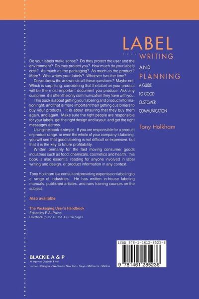 The label on your product is the most important document you produce. Ask any customer; it is often the only communication they have with you. This book is about getting your labeling and product information right, and that is more important than getting customers to buy your products. It is about ensuring that they buy them again, and again. Written primarily for the fast moving consumer goods industries such as food, chemicals, cosmetics and health, this book is also essential reading for anyone involved in label writing and design, or product information in any context. Tony Holkham is a consultant providing expertise to a range of industries. He has written in-house labeling manuals, published articles and runs training courses on the subject.