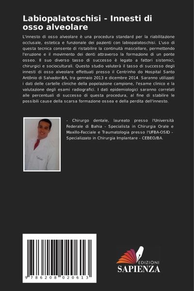 L'innesto di osso alveolare è una procedura standard per la riabilitazione occlusale, estetica e funzionale dei pazienti con labiopalatoschisi. L'uso di questa tecnica consente di ristabilire la continuità mascellare, permettendo l'eruzione e il movimento dei denti attraverso la formazione di un ponte osseo. Il suo diverso tasso di successo è legato a fattori sistemici, chirurgici e socioculturali. Questo studio valuterà il tasso di successo degli innesti di osso alveolare effettuati presso il Centrinho do Hospital Santo Antônio di Salvador-BA, tra gennaio 2013 e dicembre 2014. Saranno utilizzati i dati delle cartelle cliniche della popolazione campione, l'esame clinico e la valutazione degli esami radiografici. I dati epidemiologici saranno correlati alle percentuali di successo di questa procedura, al fine di stabilire le possibili cause della scarsa formazione ossea e della perdita dell'innesto.