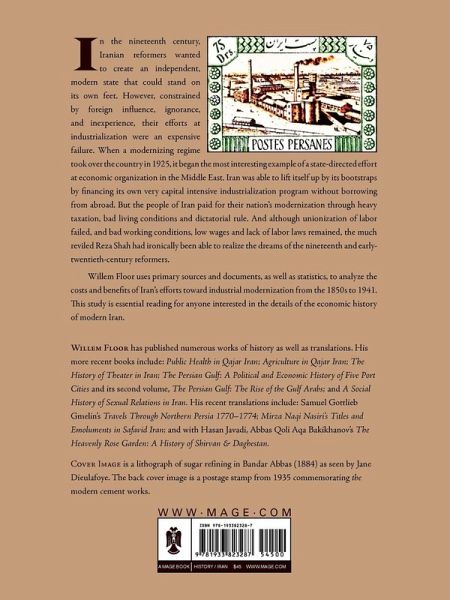 In the nineteenth century, Iranian reformers wanted to create an independent, modern state that could stand on its own feet. However, constrained by foreign influence, ignorance, and inexperience, their efforts at industrialization were an expensive failure. When a modernizing regime took over the country in 1925, it began the most interesting example of a state-directed effort at economic organization in the Middle East. Iran was able to lift itself up by its bootstraps by financing its own very capital intensive industrialization program without borrowing from abroad. But the people of Iran paid for their nation's modernization through heavy taxation, bad living conditions and dictatorial rule. And although unionization of labor failed, and bad working conditions, low wages and lack of labor laws remained, the much reviled Reza Shah had ironically been able to realize the dreams of the nineteenth and early-twentieth-century reformers. Willem Floor uses primary sources and documents, as well as statistics, to analyze the costs and benefits of Iran's efforts toward industrial modernization from the 1850s to 1941. This study is essential reading for anyone interested in the details of the economic history of modern Iran.