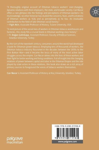 By the early twentieth century, consumers around the world had developed a taste for Ottoman-grown tobacco. Employing tens of thousands of workers, the Ottoman tobacco industry flourished in the decades between the 1870s to the First Balkan War-and it became the locus of many of the most active labor struggles across the empire. Can Nacar delves into the lives of these workers and their fight for better working conditions. Full of insight into the changing relations of power between capital and labor in the Ottoman Empire and the role played by state actors in these relations, this book also draws on a rich array of primary sources to foreground the voices of tobacco workers themselves.