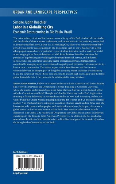 The extraordinary stories of low-income women living in São Paulo, industrial case studies and the details of three squatter settlements, and communities in the periphery researched in Simone Buechler's book, Labor in a Globalizing City, allow us to better understand the period of economic transformation in São Paulo from 1996 to 2003. Buechler's in-depth ethnographic research over a period of 17 years include interviews with a variety of social actors ranging from favela inhabitants to Wall Street bankers. Buechler examines the paradox of a globalizing city with highly developed financial,…mehr
