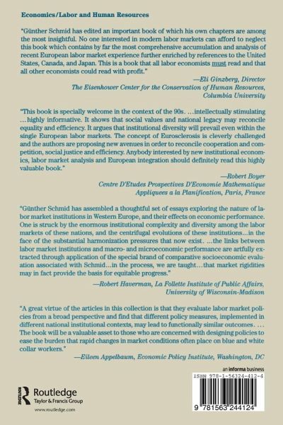 Introduction; Chapter 1 Institutional Choice and Flexible Coordination, Günther Schmid, Klaus Schömann; Chapter 2 Employment Protection and Labor Force Adjustment In EC Countries, Hugh G. Mosley; Chapter 3 Unemployment Compensation and Active Labor Market Policy, Bernd Reissert, Günther Schmid; Chapter 4 Further Education and Training for the Employed, Peter Auer; Chapter 5 Institutional Regimes of Part-Time Working, Friederike Maier; Chapter 6 Self-Employment Schemes for the Unemployed in the European Community, Nigel Meager; Chapter 7 Equality and Efficiency in the Labor Market, Günther Schmid;