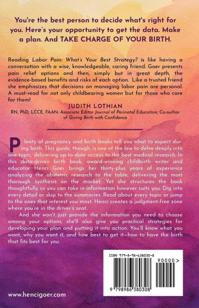 "Don't give birth without reading this first! I have been waiting years for Henci Goer's latest book. As expected, it's well-researched, easy to understand, and jam-packed with information that every birthing person should know. I have been a prenatal yoga teacher, birth educator, and support person for new families for 20 years and I am recommending this book to all of my clients. This is the kind of information birthing people are asking for and rarely getting from their health care providers. Thank you Henci, for helping people to be better consumers in their perinatal care!" -Jeanna, birth educator & childbirth support person "Reading Labor Pain: What's Your Best Strategy? is like having a conversation with a wise, knowledgeable, caring friend. Goer presents pain relief options and then, simply but in great depth, the evidence-based benefits and risks of each option. A must-read for not only childbearing women but for those who care for them!" -Judith Lothian, RN, PhD, LCCE, FAAN; Associate Editor Journal of Perinatal Education; Co-author of Giving Birth with Confidence "This book is not just for expecting moms, it's for the entire birth team. As a doula and childbirth educator, I am constantly in awe of Henci's ability to present evidence in a non-judgmental way. I'll be recommending this book with zero hesitation to all of my clients and students for years to come." -Kyleigh Banks, childbirth educator & doula, Founder of Birthworker.com For fans of Emily Oster's Expecting Better and Penny Simkin's works: Plenty of pregnancy and birth books tell you what to expect during birth. This guide, though, is one of the few to delve deeply into one topic, delivering up-to-date access to the best medical research. In this data-driven birth book, award-winning childbirth writer and educator Henci Goer brings her thirty-plus years of experience analyzing the obstetric research to the table, delivering the most thorough synthesis on the market. Yet she structures the book thoughtfully so you can take in information however suits you. Dig into every detail or skip to the summaries. Read about every topic or jump to the ones that interest you most. Henci creates a judgment-free zone where you're in the driver's seat. And she won't just provide the information you need to choose among your options, she'll also give you practical strategies for developing your plan and putting it into action. You'll know what you want, why you want it, and how best to get it-how to have the birth that fits best for you. Inside, you'll find: Thorough, up-to-date, researched-based information on every strategy: epidurals, combined spinal-epidurals, opioids, nitrous oxide, and non-drug childbirth pain relief options. Advantages and disadvantages of those strategies-including pros and cons your doctor or midwife may not mention! Practical, actionable advice preparing you to implement your plan once you've made it. A comprehensive table comparing each of your pain relief options side-by-side, letting you see at a glance how the methods stack up against each other in terms of degree of pain relief, cost, side effects, effect on the baby, and more. Info useful to first-time and experienced parents alike. You're the best person to decide what's right for you. Here's your opportunity to get the data. Make a plan. And TAKE CHARGE OF YOUR BIRTH.