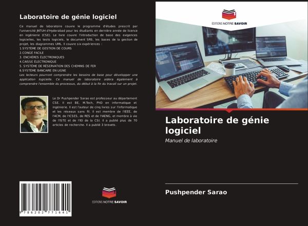 Ce manuel de laboratoire couvre le programme d'études prescrit par l'université JNTUH d'Hyderabad pour les étudiants en dernière année de licence en ingénierie (CSE). Le livre couvre l'introduction de base des exigences logicielles, les tests logiciels, le document SRS, les bases de la gestion de projet, les diagrammes UML. Il couvre six expériences :1.SYSTÈME DE GESTION DE COURS2.CONGÉ FACILE3. ENCHÈRES ÉLECTRONIQUES4.CAISSE ÉLECTRONIQUE5. SYSTÈME DE RÉSERVATION DES CHEMINS DE FER6.SYSTÈME BANCAIRE EN LIGNELes lecteurs pourront comprendre les besoins de base pour développer une application logicielle. Ce manuel de laboratoire aidera également à comprendre l'ensemble du processus, du début à la fin du travail sur un projet.