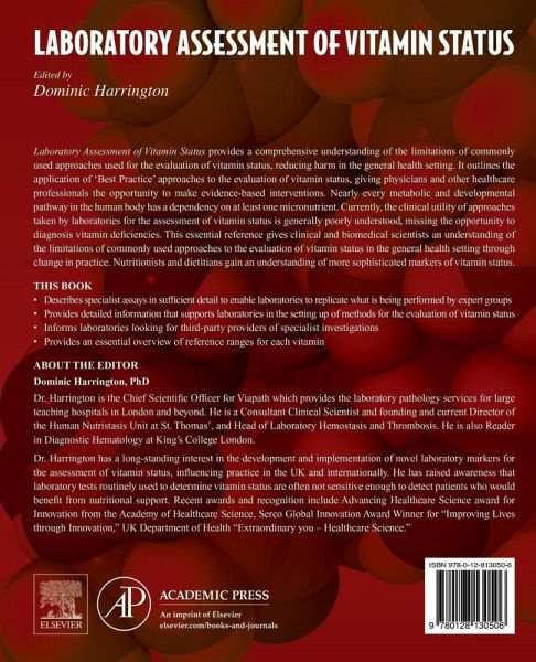 Laboratory Assessment of Vitamin Status provides a comprehensive understanding of the limitations of commonly used approaches used for the evaluation of vitamin status, reducing harm in the general health setting. It outlines the application of 'Best Practice' approaches to the evaluation of vitamin status, giving physicians and other healthcare professionals the opportunity to make evidence-based interventions. Nearly every metabolic and developmental pathway in the human body has a dependency on at least one micronutrient. Currently, the clinical utility of approaches taken by laboratories for the assessment of vitamin status is generally poorly understood, missing the opportunity to diagnosis vitamin deficiencies. This essential reference gives clinical and biomedical scientists an understanding of the limitations of commonly used approaches to the evaluation of vitamin status in the general health setting through change in practice. Nutritionists and dietitians gain an understanding of more sophisticated markers of vitamin status.