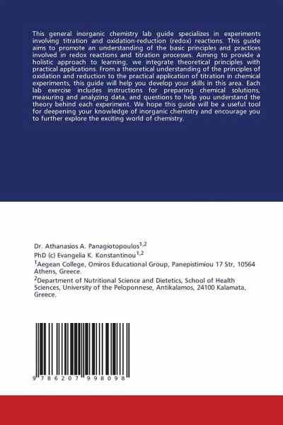 This general inorganic chemistry lab guide specializes in experiments involving titration and oxidation-reduction (redox) reactions. This guide aims to promote an understanding of the basic principles and practices involved in redox reactions and titration processes. Aiming to provide a holistic approach to learning, we integrate theoretical principles with practical applications. From a theoretical understanding of the principles of oxidation and reduction to the practical application of titration in chemical experiments, this guide will help you develop your skills in this area. Each lab exercise includes instructions for preparing chemical solutions, measuring and analyzing data, and questions to help you understand the theory behind each experiment. We hope this guide will be a useful tool for deepening your knowledge of inorganic chemistry and encourage you to further explore the exciting world of chemistry.