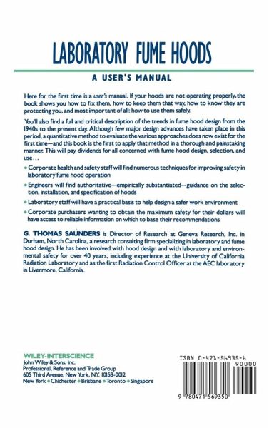 G. Thomas Saunders is the author of Laboratory Fume Hoods: A User's Manual, published by Wiley.