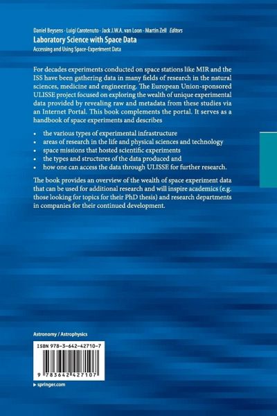 For decades experiments conducted on space stations like MIR and the ISS have been gathering data in many fields of research in the natural sciences, medicine and engineering. The EU-sponsored Ulisse Internet Portal provides metadata from space experiments of all kinds and links to the data. Complementary to the portal, this book will serve as handbook listing space experiments by type of infrastructure, area of research in the life and physical sciences, data type, what their mission was, what kind of data they have collected and how one can access this data through Ulisse for further research.