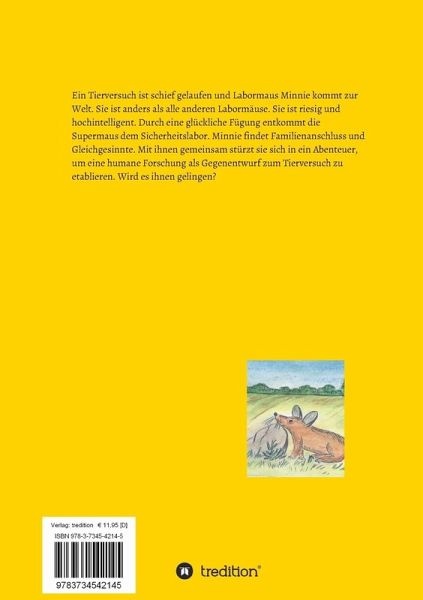 Labormaus Minnie ist das Produkt eines misslungenen Tierversuchs. Minnie ist hübsch, riesig und hochintelligent. Die Supermaus entkommt dem Sicherheitslabor und findet Gleichgesinnte. Mit außergewöhnlichen Mitteln setzen sie sich für den Schutz von Tieren und für eine humane Forschung als Gegenentwurf zum Tierversuch ein. Wird es ihnen gelingen?Die abenteuerliche Geschichte der Labormaus Minnie hat einen realen Hinter- grund und ermöglicht Einblicke in den schwer durchschaubaren Dschungel der Tierversuchsforschung. Die allermeisten Karrieren in der Biomedizin basieren auf Tierversuchen. Viele Experimentatoren haben die menschliche Gesundheit aus ihrem Blickfeld verloren. Es gibt Patente auf Lebewesen und einen millionenschweren Markt für gentechnisch veränderte Tiere, während die Erforschung neuer tierfreier Testmethoden chronisch unterfinanziert ist, obwohl diese Forschung ganz unmittelbar der menschlichen Gesundheit dient. Glückli- cherweise erkennen immer mehr Wissenschaftlerinnen und Wissenschaftler diesen Missstand und Labormaus Minnie ist nicht die einzige, die dieses sich selbst erhaltende System der Tierversuche abschaffen will.Die Personen, die Handlung und die Orte der Handlung der Geschichte sind frei erfunden. Sollte es Ähnlichkeiten und Übereinstimmungen mit existierenden Personen geben, sind diese rein zufällig und nicht von der Autorin beabsichtigt.