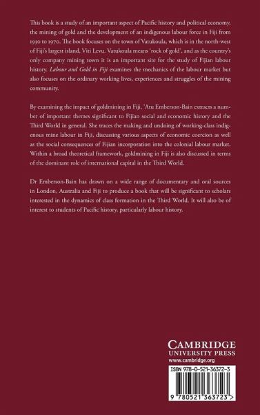 This 1994 book is a study of an important aspect of Pacific history and political economy, the mining of gold and the development of an indigenous labour force in Fiji from 1930 to 1970. The book focuses on the town of Vatukoula, which is in the north-west of Fiji's largest island Viti Levu and is the country's only company mining town. Labour and Gold in Fiji examines the mechanics of the labour market but also focuses on the ordinary working lives, experiences and struggles of the mining community. By examining the impact of gold mining in Fiji, the author extracts a number of important themes significant to Fijian social and economic history and the Third World in general. She traces the making and undoing of working class indigenous mine labour in Fiji, discussing various aspects of economic coercion as well as the social consequences of Fijian incorporation into the colonial labour market.
