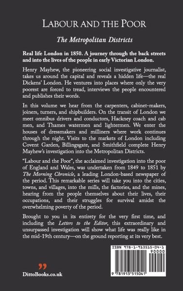 Real life London in 1850. A journey through the back streets and into the lives of the people in early Victorian London. Henry Mayhew, the pioneering social investigative journalist, takes us around the capital and reveals a hidden life - the real Dickens' London. He ventures into places where only the very poorest are forced to tread, interviews the people encountered and publishes their words. In this volume we hear from the carpenters, cabinet-makers, joiners, turners, and shipbuilders. On the transit of London we meet omnibus drivers and conductors, Hackney coach and cab men, and Thames watermen and lightermen. We enter the houses of dressmakers and milliners where work continues through the night. Visits to the markets of London including Covent Garden, Billingsgate, and Smithfield complete Henry Mayhew's investigation into the Metropolitan Districts. "Labour and the Poor", the acclaimed investigation into the poor of England and Wales, was undertaken from 1849 to 1851 by The Morning Chronicle, a leading London-based newspaper of the period. This remarkable series will take you into the cities, towns, and villages, into the mills, the factories, and the mines, hearing from the people themselves about their lives, their occupations, and their struggles for survival amidst the overwhelming poverty of the period. Brought to you in its entirety for the very first time, and including the Letters to the Editor, this extraordinary and unsurpassed investigation will show what life was really like in the mid-19th century - on the ground reporting at its very best. In this series:Volume I: The Metropolitan Districts. Henry Mayhew. Volume II: The Metropolitan Districts. Henry Mayhew. Volume III: The Metropolitan Districts. Henry Mayhew. Volume IV: The Metropolitan Districts. Henry Mayhew. Volume V: The Manufacturing Districts. Angus B. Reach. Volume VI: The Rural Districts. Alexander Mackay and Shirley Brooks. Volume VII: The Rural Districts. Alexander Mackay and Shirley Brooks. Volume VIII: Wales. Special Correspondent. Volume IX: Birmingham. Charles Mackay. Volume X: Liverpool. Charles Mackay.