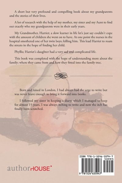 A short but very profound and compelling book about my grandparents and the stories of their lives. A lot of research with the help of my mother, my sister and my Aunt to find out exactly who my grandparents were in their early years. My Grandmother, Harriet; a slow learner in life let's just say couldn't cope with the amount of children she went on to have. At one point the nurses in the hospital smothered one of her twin boys; killing him. This lead Harriet to roam the streets in the hope of finding her child. Phyllis; Harriet's daughter had a very sad and complicated life. This book was completed with the hope of understanding more about the family; where they came from and how they fitted into the family tree.