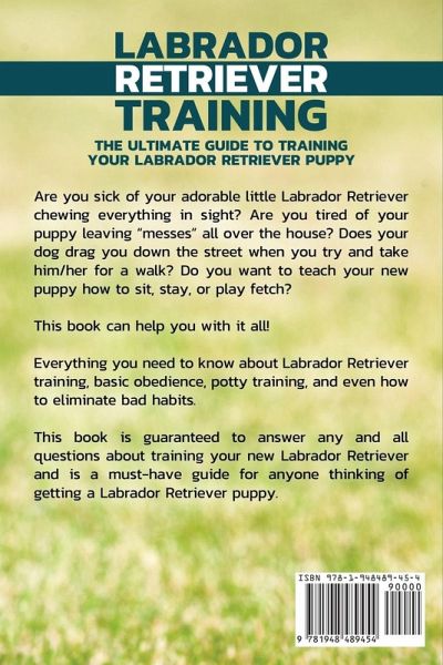Do you stare in amazement at the well-behaved Labrador Retriever puppy at the dog park listening and following his owner's commands while your puppy is off wreaking havoc or dragging you all over the park? Are you sick of your adorable little Labrador Retriever chewing everything in sight? Are you tired of your puppy leaving "surprises" all over the house? Do you want to teach your new puppy how to sit, stay, or heel? Does your puppy whine or howl uncontrollably when you leave the house? This ultimate Labrador Retriever training guide can help you with it all! Everything you need to know about Labrador Retriever training and basic obedience. This book is guaranteed to answer any of your questions about training your Labrador Retriever and is a must-have for anyone thinking of getting a Labrador Retriever puppy. Here Is A Preview of What You'll Learn... * Is a Labrador Retriever Right For You? * How Much Is Enough Exercise? * How To Speak Your Dog’s Language * Effective Discipline * How to Potty Train Your Labrador Retriever * Basic Obedience Training Such As: Sit, Drop, Come, Fetch, Stay, and Wait * Leash Training Your Labrador Retriever Puppy * Socialization Training * How to Stop the Biting and Chewing * and Advanced Training Techniques This is the ULTIMATE guide for all Labrador Retriever puppy owners and individuals who are thinking of getting a Labrador Retriever puppy. Get your copy of the Ultimate Labrador Retriever training guide today and get one step closer to that perfect dog you’ve always dreamed about!