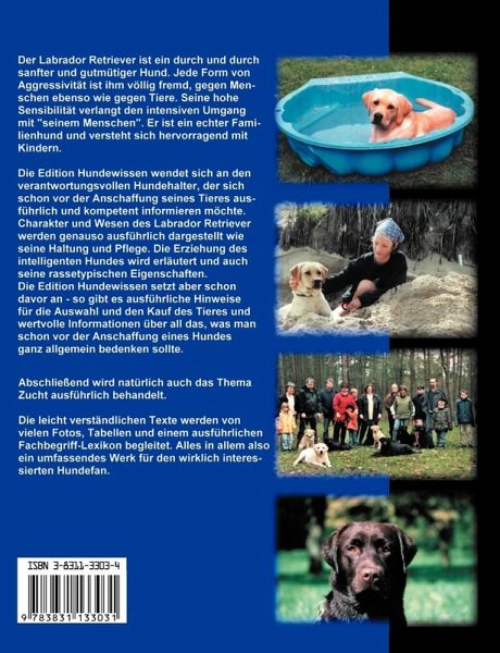 Der Labrador Retriever ist ein durch und durch sanfter und gutmütiger Hund. Jede Form von Aggressivität ist ihm völlig fremd, gegen Menschen ebenso wie gegen Tiere. Seine hohe Sensibilität verlangt den intensiven Umgang mit "seinem Menschen". Er ist ein echter Familienhund und versteht sich hervorragend mit Kindern. Die Edition Hundewissen wendet sich an den verantwortungsvollen Hundehalter, der sich schon vor der Anschaffung seines Tieres ausführlich und kompetent informieren möchte. Charakter und Wesen des Labrador Retriever werden genauso ausführlich dargestellt wie seine Haltung und Pflege. Die Erziehung des intelligenten Hundes wird erläutert und auch seine rassetypsichen Eigenschaften. Die Edition Hundewissen setzt aber schon davor an - so gibt es ausführliche Hinweise für die Auswahl und den Kauf des Tieres und wertvolle Informationen über all das, was man schon vor der Anschaffung eines Hundes ganz allgemein bedenken sollte. Abschließend wird natürlich auch das Thema Zucht ausführlich behandelt. Die leicht verständlichen Texte werden von vielen Fotos, Tabellen und zahlreichen Zusatzdokumenten, wie z.B. Gesetzestexten begleitet. Alles in allem also ein umfassendes Werk für den wirklich interessierten Hundfan.