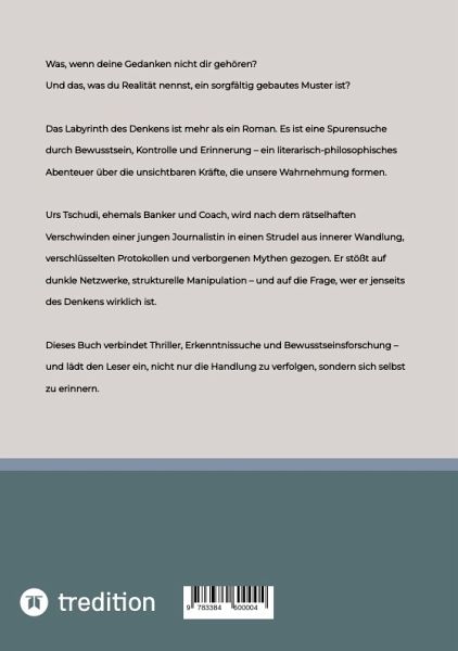 "Das Labyrinth des Denkens" ist ein literarischer Roman über verborgene Strukturen der Wahrnehmung, mentale Kontrolle und die Kraft innerer Resonanz. Urs Tschudi gerät nach dem Verschwinden einer Journalistin in ein Netz aus Mythen, Protokollen und Bewusstseinsforschung - und entdeckt dabei, dass wahre Freiheit nicht im Außen beginnt, sondern im eigenen Feld.