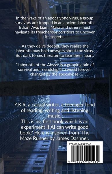 In the wake of an apocalyptic virus, four survivors are trapped in an ancient labyrinth. Ethan, Ava, Liam, and Maya must navigate its treacherous corridors to uncover its secrets. As they delve deeper, they realize the labyrinth may hold answers about the virus. But dark forces threaten to tear them apart. "Labyrinth of the Abyss" is a gripping tale of survival and friendship in a world forever changed by the apocalypse.