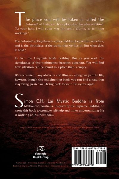 The place you will be taken is called the Labyrinth of Emptiness. It's a place that has always existed. "As your host, I will guide you through a journey to its inner workings." The Labyrinth of Emptiness is a place hidden deep within ourselves, and is the birthplace of the world that we live in. But what does it hold? In fact, the Labyrinth holds nothing. But as you read, the significance of this nothingness becomes apparent. You will find how salvation can be found in a place that is empty. We encounter many obstacles and illnesses along our path in life; however, though this enlightening book, you can find a road that may bring greater well-being back to your life source again. Simon C.H. Lai Mystic Buddha is from Melbourne, Australia. Inspired by the Supreme Buddha, he wrote this book to promote self-help and inner understanding. He is working on his next book. Publisher's website: http://www.strategicpublishinggroup.com/title/LabyrinthOfEmptiness.html
