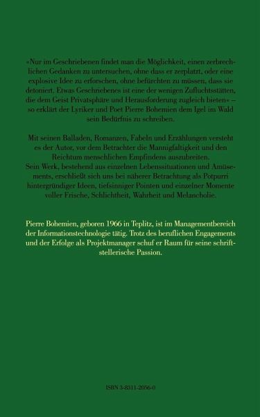 Der Autor versteht es, vor dem Betrachter die Mannigfaltigkeit und den Reichtum menschlichen Empfindens auszubreiten. Sein Werk, bestehend aus einzelnen, phantasievollen Lebenssituationen und Amüsements, erschließt sich dem Leser bei näherer Betrachtung als Potpourri hintergründiger Ideen, tiefsinniger Pointen und einzelner Momente voller Frische, Schlichtheit, Wahrheit und Melancholie. Das Buch gleicht einer Achterbahnfahrt, die sich, beginnend in den dunklen Tiefen der Seele, in schwindelerregende Höhen erhebt, um durch plötzliche Richtungswechsel den Leser hier und da zu frappieren. Dabei nutzt es das Spektrum aller ihm bekannten Dimensionen wirkungsvoll aus. Allerdings sollte es nicht allzu rasant gelesen werden. Es ist alles andere als leichte Kost, auch wenn uns so manche Geschichte darin zu dieser Denkweise verleiten mag. Jedes Gedicht, jede Erzählung ist eine eigene kleine Welt, was sowohl den Stil, als auch Hintergrund, Intension und Wirkung betrifft. Ein Buch, das immer wieder aufs Neue gelesen werden will.