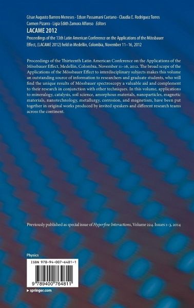 Proceedings of the Thirteenth Latin American Conference on the Applications of the Mössbauer Effect, Medellin, Colombia, November 11-16, 2012. The broad scope of the Applications of the Mössbauer Effect to interdisciplinary subjects makes this volume an outstanding source of information to researchers and graduate students, who will find the unique results of Mössbauer spectroscopy a valuable aid and complement to their research in conjunction with other techniques. In this volume, applications to mineralogy, catalysis, soil science, amorphous materials, nanoparticles, magnetic materials, nanotechnology, metallurgy, corrosion, and magnetism, have been put together in original works produced by invited speakers and different research teams across the continent. Reprinted from Hyperfine Interactions (HYPE) Volume