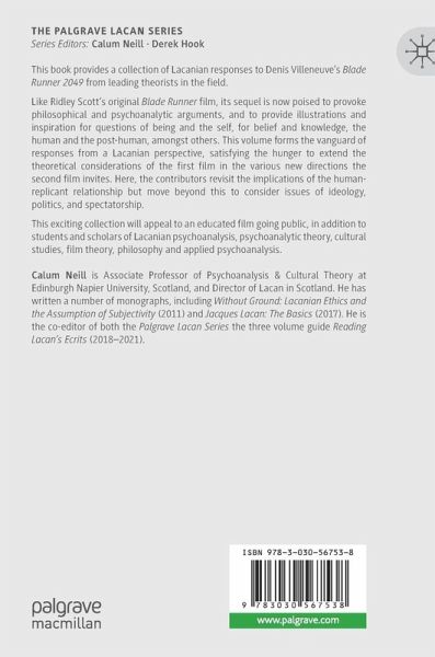 Like Ridley Scott's original Blade Runner film, its sequel is now poised to provoke philosophical and psychoanalytic arguments, and to provide illustrations and inspiration for questions of being and the self, for belief and knowledge, the human and the post-human, amongst others. This volume forms the vanguard of responses from a Lacanian perspective, satisfying the hunger to extend the theoretical considerations of the first film in the various new directions the second film invites. Here, the contributors revisit the implications of the human-replicant relationship but move beyond this to consider issues of ideology, politics, and spectatorship.