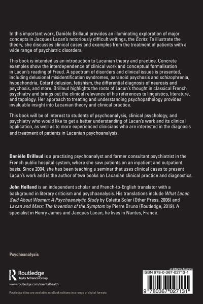 In this important work, Danièle Brillaud provides an illuminating exploration of major concepts in Jacques Lacan's notoriously difficult writings, the Écrits. To illustrate the theory, she discusses clinical cases and examples from the treatment of patients with a wide range of psychiatric disorders.
