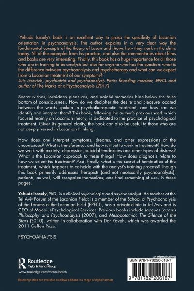 Secret wishes, forbidden pleasures, and painful memories hide below the false bottom of consciousness. How do we decipher the desire and pleasure located between the words spoken in psychotherapeutic treatment, and how can we identify and interpret them? This book, following the author's previous work which focused mainly on Lacanian theory, is dedicated to the practice of psychological treatment. Given its general clarity, the book can also be useful to those who are not deeply versed in Lacanian thinking. How does one interpret symptoms, dreams, and other expressions of the unconscious? What is transference, and how is it put to work in treatment? How do we work with anxiety, depression, suicidal tendencies and other types of distress? What is the Lacanian approach to these things? How does diagnosis relate to how we orient the treatment? And, finally, what is the secret of termination of the treatment, which happens to coincide with the analyst's training process?