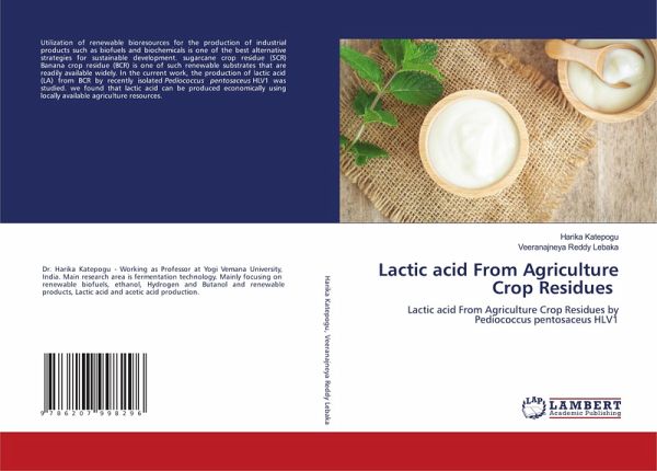 Utilization of renewable bioresources for the production of industrial products such as biofuels and biochemicals is one of the best alternative strategies for sustainable development. sugarcane crop residue (SCR) Banana crop residue (BCR) is one of such renewable substrates that are readily available widely. In the current work, the production of lactic acid (LA) from BCR by recently isolated Pediococcus pentosaceus HLV1 was studied. we found that lactic acid can be produced economically using locally available agriculture resources.