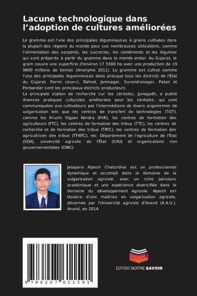 Le gramme est l'une des principales légumineuses à grains cultivées dans la plupart des régions du monde pour ses nombreuses utilisations, comme l'alimentation des serpents, les sucreries, les condiments et les légumes qui sont préparés à partir du gramme dans le monde entier. Au Gujarat, le gram couvre une superficie d'environ 17 5500 ha avec une production de 19 9800 millions de tonnes (Anonyme 2011). Le gramme est cultivé comme l'une des principales légumineuses dans presque tous les districts de l'État du Gujarat. Parmi ceux-ci, Dahod, Jamnagar, Surendranagar, Patan et Porbandar sont les principaux districts producteurs.La principale station de recherche sur les céréales, Junagadh, a publié diverses pratiques culturales améliorées pour les céréales, qui sont communiquées aux cultivateurs par l'intermédiaire de divers organismes de vulgarisation tels que les centres de transfert de technologies (TOT), comme les Krushi Vigyan Kendra (KVK), les centres de formation des agriculteurs (FTC), les centres de formation des tribus (TTC), les centres de recherche et de formation des tribus (TRTC), les centres de formation des agricultrices des tribus (TFWTC), etc. Département de l'agriculture de l'État (SDA), université agricole de l'État (SAU) et organisations non gouvernementales (ONG).