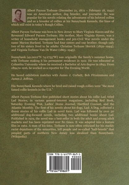Albert Payson Terhune (December 21, 1872 - February 18, 1942) was an American author, dog breeder, and journalist. He was popular for his novels relating the adventures of his beloved collies and as a breeder of collies at his Sunnybank Kennels, the lines of which still exist in today's Rough Collies. Albert Payson Terhune was born in New Jersey to Mary Virginia Hawes and the Reverend Edward Payson Terhune. His mother, Mary Virginia Hawes, was a writer of household management books and pre-Civil War novels under the name Marion Harland. Terhune had four sisters and one brother, though only two of his sisters lived to be adults: Christine Terhune Herrick (1859-1944); and Virginia Terhune Van De Water (1865-1945). Sunnybank (41.0012°N 74.2755°W) was originally the family's summer home, with Terhune making it his permanent residence in 1912. He was educated at Columbia University where he received a Bachelor of Arts degree in 1893. From 1894 to 1916, he worked as a reporter for The Evening World. He boxed exhibition matches with James J. Corbett, Bob Fitzsimmons and James J. Jeffries. His Sunnybank Kennels where he bred and raised rough collies were "the most famed collie kennels in the U.S." Albert Payson Terhune first published short stories about his collie Lad, titled Lad Stories, in various general-interest magazines, including Red Book, Saturday Evening Post, Ladies' Home Journal, Hartford Courant, and the Atlantic Monthly. The first of his novels about his dogs, Lad: A Dog, collected a dozen stories of his collie Lad in novel form. Lad was followed by over 30 additional dog-focused novels, including two additional books about Lad. Published in 1919, the novel was a best seller in both the adult and young adult markets and has been reprinted over 80 times. It was adapted into a feature film in 1962. A man of his time, Terhune is now often criticized for his starkly racist depictions of the minorities, hill people and so-called "half-breeds" that peopled parts of northern New Jersey less idealized than Sunnybank. (Wikipedia)