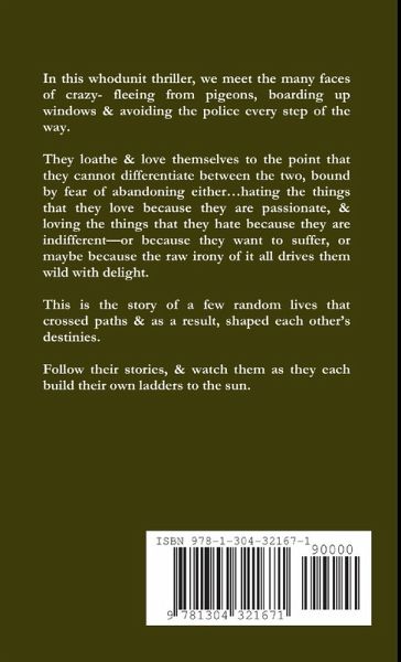 Random lives cross paths in this whodunit style thriller. Featuring a misfit cast of crazies, this short novel digs into the many layers of madness & exposes the reasoning behind them. As humorous as it is disturbing, this novella is sure to not disappoint the reader. Pull up a chair & take a brief journey through the eyes of those that would dare to build their ladders to the sun.