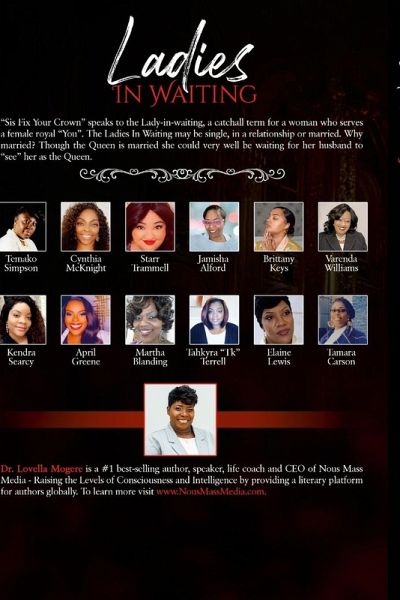 Ladies In Waiting - "Sis Fix Your Crown" speaks to the Lady-in-waiting, a catchall term for a woman who serves a female royal "You". The Ladies In Waiting may be single, in a relationship or married. Why married? Though the Queen is married she could very well be waiting for her husband to "see" her as the Queen.