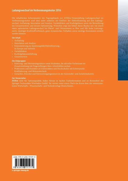 Die inhaltlichen Schwerpunkte des Tagungsbands zur ATZlive-Veranstaltung Ladungswechsel im Verbrennungsmotor 2016 sind unter anderem der Einfluss der Elektrifizierung auf den Ladungswechsel, Aufladung, Simulation und Analyse, Variabilitäten und Kurbelgehäuse sowie die Betrachtung des Gesamtsystems und dessen Optimierung. Weiterhin zeigt der Inhalt dieses Buches auf, wie durch einen optimierten Ladungswechsel bei Diesel- und Ottomotoren in Pkw und Nfz hohe Leistungswerte, niedriger Kraftstoffverbrauch, gutes dynamisches Verhalten sowie niedrige Emissionen erreicht werden können.